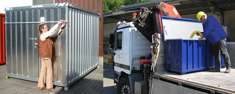 Alle SchnellbauContainer zeichnen sich außerdem durch ihre hohe Arbeits- und Betriebssicherheit aus. Nicht umsonst haben die Produkte von BOS das begehrte GS-Zeichen vom TÜV Nord erhalten. Profilzylinderschlösser sowie massive Diebstahlverriegelung an den Türen – die es ebenfalls in verschiedensten Ausführungen gibt – garantieren zudem einen sicheren Einbruchschutz. Unter den SchnellbauContainern besonders beliebt ist der SC3000. Durch sein zulässiges Gesamtgewicht bis 3 t sowie die Ausstattung mit vier Kranösen, lässt er sich mühelos transportieren – perfekt also für den Einsatz auf Baustellen, in Kommunen, aber auch auf Bau- oder Friedhöfen. So kann der SchnellbauContainer beispielsweise auf dem Wertstoffhof als Sammelbehälter für Wertstoffe wie Elektromüll genutzt werden. Ist er voll, lässt sich der Container anschließend problemlos mit einem Kran auf den LKW verladen und so zur nächsten Deponie transportieren, wo er dann nur noch ausgeräumt werden muss. Daneben ist aber auch der Transport mit einem Gabelstabler möglich. Dafür befinden sich unter dem Holzboden des Containers Abstandhalter. Diese Konstruktion hat noch einen weiteren Vorteil: Da der Container so nicht direkt auf dem Boden steht, wird der Holzboden fortwährend belüftet. Das verlängert wiederum seine Haltbarkeit.