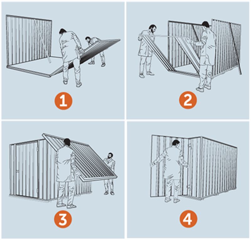Die Klassiker bei BOS sind unumstritten die SchnellbauContainer. Diese stabilen, robusten, langlebigen und unempfindlichen Raumwunder aus Stahl lassen sich von nur zwei Personen in gerade einmal fünf Minuten aufbauen (bei einer Größe von 3 x 2m). Der Clou dabei: Die Bauteile werden, ähnlich eines Baukastensystems, mithilfe eines Steckprinzips montiert. Dabei werden einfach Steckschnellverschlüsse miteinander verbunden. Und das ganz ohne den Einsatz von irgendeinem Werkzeug. Auch die Bauweise der einzelnen Montageteile unterscheidet sich stark von konventionellen Verfahren. Denn die Komponenten werden aus mehreren Stücken gefertigt und mit Best-Point-Verbindungen zusammengefügt. Bei diesem Verfahren bleibt die schützende Zinkschicht unbeschädigt. Zudem gibt BOS hierauf eine Korrosionsschutz-Garantie von 10 Jahren. Die SchnellbauContainer sind in verschiedenen Ausführungen und Größen erhältlich. Das Sortiment umfasst Breiten und Längen von 1 m bis 6 m sowie Höhen von 1,60 m bis knapp 2,40 m. Doch damit nicht genug: Sollte ein Kunde andere Maße benötigen, fertigt das nordrhein-westfälische Unternehmen auf Wunsch auch Sondergrößen an.
