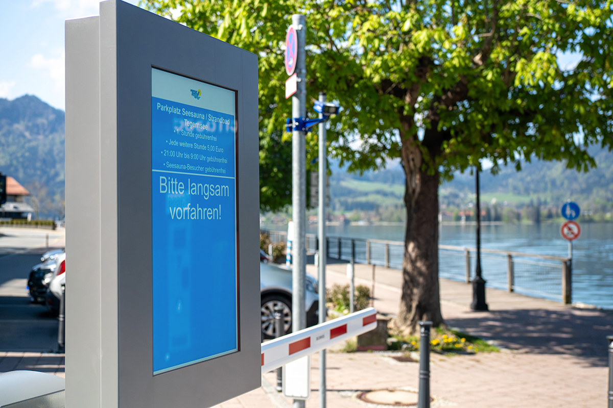 Am schönen Tegernsee hat Bremicker Verkehrstechnik einen hochfrequentierten Parkplatz mit neuester Technik ausgestattet: ein ticketloses System mit Kennzeichenerkennung und vielfältigen Bezahlmöglichkeiten. Bei der Einfahrt wird das Kennzeichen von einer LPR-Kamera erfasst und der Einfahrtszeitpunkt wird im System hinterlegt. Die Zufahrt zu diesem Parkplatz erfolgt ohne Schranke, was den Vorteil bietet, dass der Verkehrsfluss nicht unterbrochen wird und keine Wartezeiten durch Öffnungs- oder Schließvorgänge entstehen.