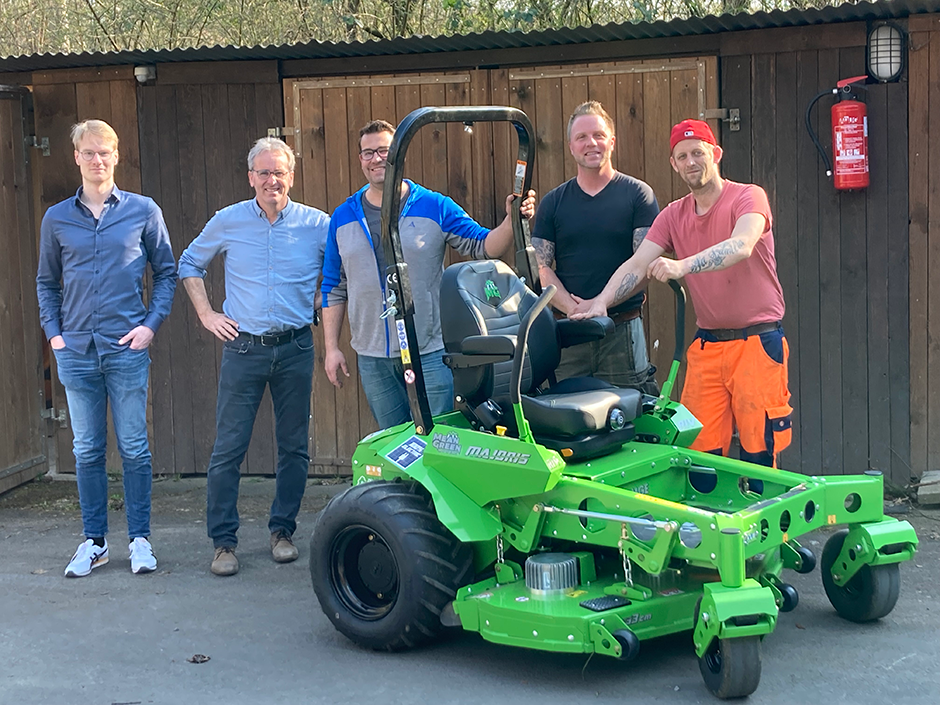 Die Anwender konnten die Mean Green Modelle 2021 auf den eigenen Flächen im Stadtgebiet testen und waren auf Anhieb von den Vorzügen der Maschinen begeistert. Entschieden hat man sich im Rahmen einer Ersatzbeschaffung von einer konventionell betriebenen Maschine für das Modell Majoris RIV mit 133cm Arbeitsbreite.