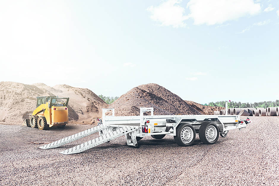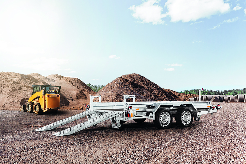 Gerade die Modellreihe BT-ST in der AS-Serie sei für diesen Zweck konstruiert. Sie besitzt feste, klappbare Auffahrschienen. Ab einer Länge von 3.030 und einer Breite von 1.620 mm stehen die Fahrzeuge zur Verfügung – die größte Version ist 4.030 mm lang und 1.950 mm breit. Die niedrige Ladehöhe von 480 mm in Kombination mit den verstellbaren Abstützungsmöglichkeiten, sicherten das problemlose Beladen des Profi-Anhängers. Mit einem Gesamtgewicht von 2.700 bis 3.500 kg und einer Nutzlast von 1.948 bis 2.733 kg eigneten sich die Anhänger auch für unterschiedliche Baumaschinen.
