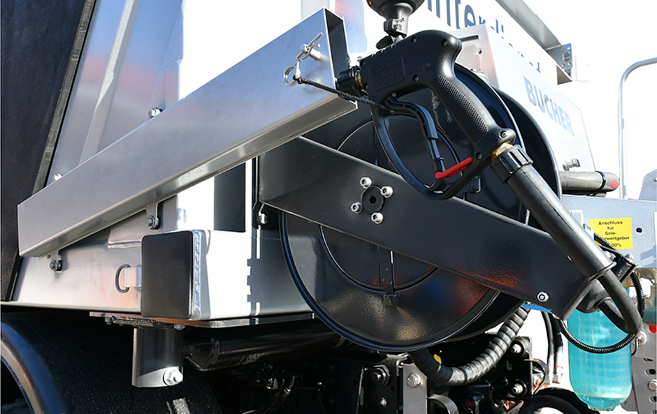 Noch breitenwirksamer lassen sich die Sole-Streuautomaten der Baureihe Yeti L einsetzen. Durch ihre Behälter-Bauweise sowie verschiedene Behältergrößen lassen sie sich gut auf kommunale Trägerfahrzeuge wie Unimog und mittelgroße Lkw aufbauen. Die Sole wird über einen Streuteller bis zu einer Breite von acht Metern ausgebracht. Mit der optional erhältlichen, unterhalb des Streutellers adaptierten Streueinheit BrineStar kann reine Sole sogar auf bis zu zwölf Meter ausgebracht werden. Damit lässt sich ein vollflächiges Streubild mit wenig Verwirbelungen erzeugen. Sowohl die Normverteilung als auch die maximale Wurfweite erfüllen die Vorgaben der DIN EN 15597-1/2. Mit entsprechendem Zubehör – wie z.B. einem Hochdruckreiniger mit Schlauchtrommel – eignet sich der Yeti L auch für Anwendungen im Sommerdienst wie Gießen, Schwemmen und Reinigen.