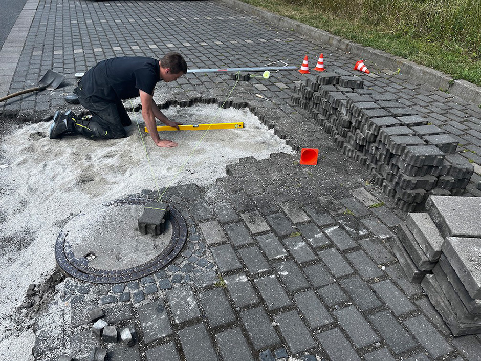 Kleinflächige Flächenabschnitte in Pflasterbauweise werden ebenfalls instandgesetzt. Es werden gebundene und ungebundene Pflasterbereiche sowohl in Beton- als auch Natursteinpflaster fachgerecht bearbeitet.