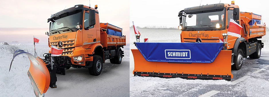 Im Fuhrpark von Mercedes-Benz CharterWay befinden sich neben einer großen Auswahl an Lkw und Vans mit dem Stern auch komplette Winterdienstlösungen zur Miete. Dabei handelt es sich um Fahrzeuge des Typs Mercedes-Benz Atego 1530 AK und Arocs 2036 AK, ausgestattet mit Schneepflug und Streumaschine der Firma Aebi Schmidt. Die Fahrzeuge stehen deutschlandweit ab 24 Stunden bis zu mehreren Monaten oder Jahren zur Miete bereit. Kommunen können dadurch leistungsgerechte Winterdienstfahrzeuge für einen befristeten Zeitraum einstellen, ohne Kapital im Haushalt für die restliche Jahreszeit zu binden.