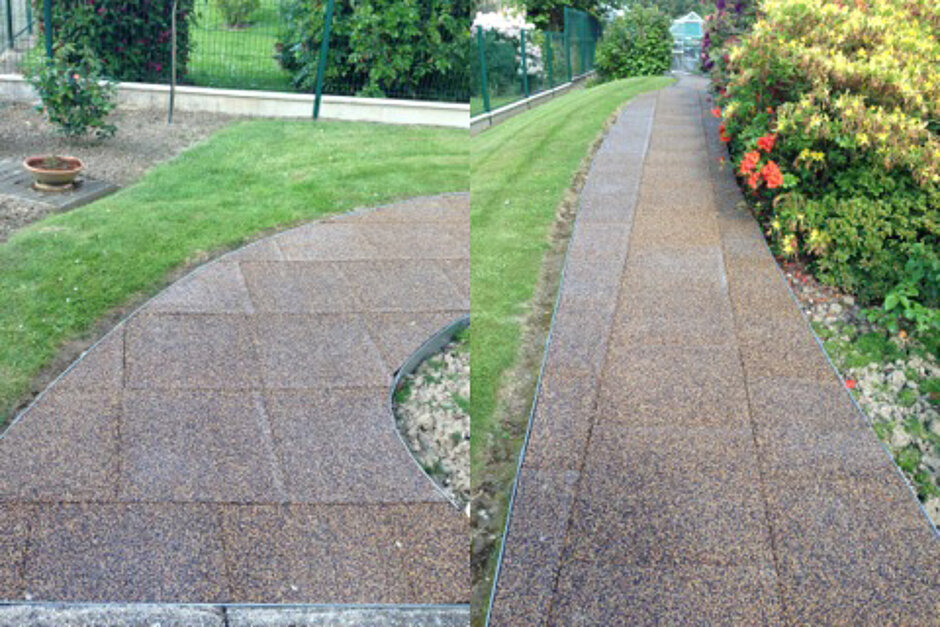 Plötzlich wird es sogar möglich, sich kurz und tatsächlich schmerzlos auf den Gartenweg zu knien, um im Vorbeigehen etwas Unkraut aus einem Beet zu zupfen. Anders als auf einen harten Bodenbelag oder einem Lehmpfad kann man selbst über längere Zeit sehr bequem auf dem Weg hocken oder knien, um im Beet zu arbeiten. Knieschoner oder Unterlagen, üblicherweise die ständigen Begleiter des passionierten Hobbygärtners, gehören damit der Vergangenheit an.