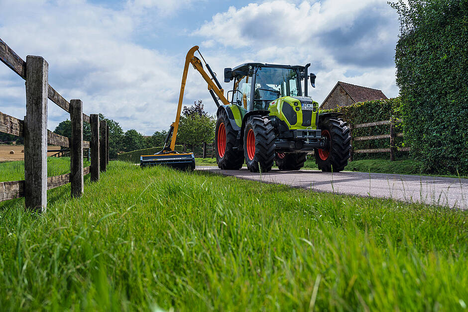 Dies und mehr vereint CLAAS im neuen AXOS 3. Mit vier Modellen positioniert er sich zwischen ARION 400 und AXOS 200 und bringt neben der DNA des früheren AXOS 300 und CELTIS 300 eine Vielzahl überzeugender Argumente und Ausstattungen mit. Dazu gehören starke, spritzige und sparsame Motoren, große Antriebsräder (auf der Hinterachse bis 30 Zoll bzw. 1,60 Meter Durchmesser), eine hohe Nutzlast und starke Kraftheber in Front und Heck, eine geringe Höhe über Dachoberkante ab 2,50 Meter sowie eine geräumige, übersichtliche Kabine mit intuitiven Bedienelementen. Besonderheit: Die Türen sind vorne angeschlagen, lassen sich um 180 Grad nach vorne aufschwenken und dort z.B. auch arretieren – ein Erbe der beliebten ersten Generation des AXOS 300. Und: Dank Freigabe für hydrierte Pflanzenöle (HVO) können die Traktoren auch mit deutlich reduziertem CO2-Fußabdruck arbeiten.