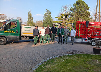 Im Verlauf des vergangenen Jahres fanden weitere Gespräche statt, letztlich wurde kurz vor Weihnachten geordert. Nun, einige Wochen später, wurde die CMC-Raupe in Schmid Hausfarbe „Verkehrsblau“ und mit umfangreicher Ausstattung geliefert. Da die 18 Meter Bühne mit maximalen 11,15 Metern Reichweite auch für die Baumpflege eingesetzt werden soll, wurde bei CMC Arbeitsbühnen noch ein „Baumpaket“ integriert, also zusätzliche Schutzabdeckungen angebracht. Zudem verfügt die Hebebühne über einen 230-V E-Motor für den elektrischen Betrieb sowie über einen Zwölf-V-Notablass, um die Bühne z.B. bei etwaigem leergelaufenen Dieseltank über die Batterie wieder herunterfahren zu können.