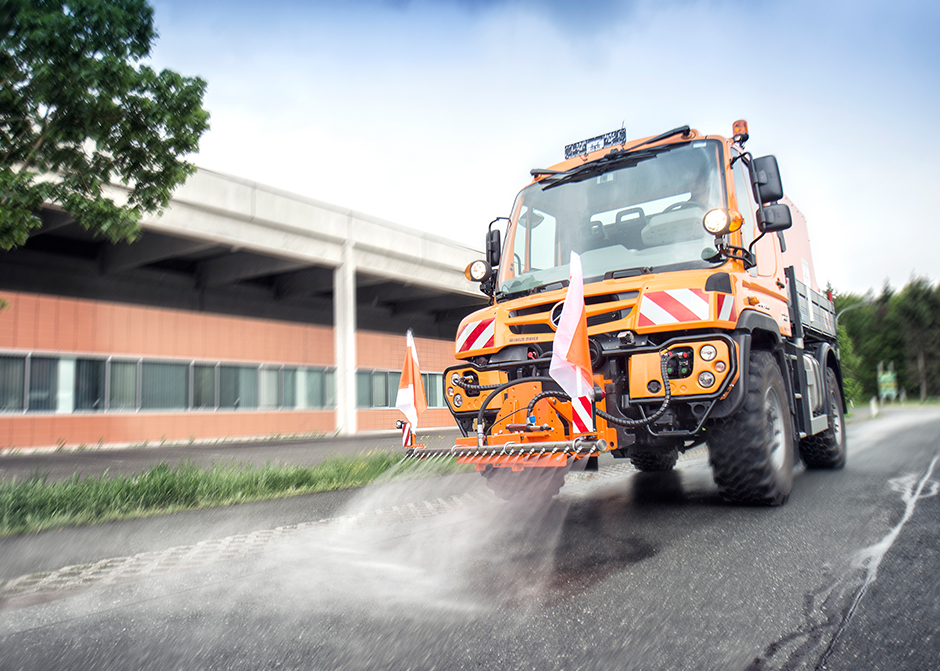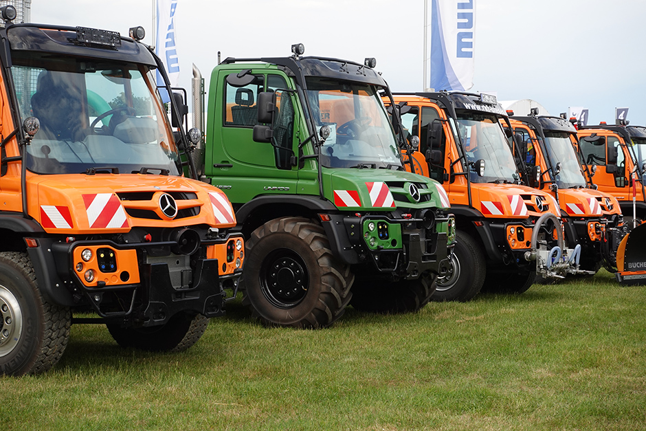 Mehr als 20 hochspezialisierte Unimog gibt es mit Mähgerät, Gießtechnik, Hacker, Sinkkastenreiniger, Kehrmaschine und umfassender Winterdienstausstattung mit Schneepflug, Streuer oder Schneefräse von verschiedenen Aufbauherstellern zu sehen. Aus der hochgeländegängigen Baureihe wird ein Unimog U 5023 mit Ladekran und Selbstbergewinde präsentiert, denn im Außengelände können Besucher die Fahrzeuge und ihre Funktionen live erleben.