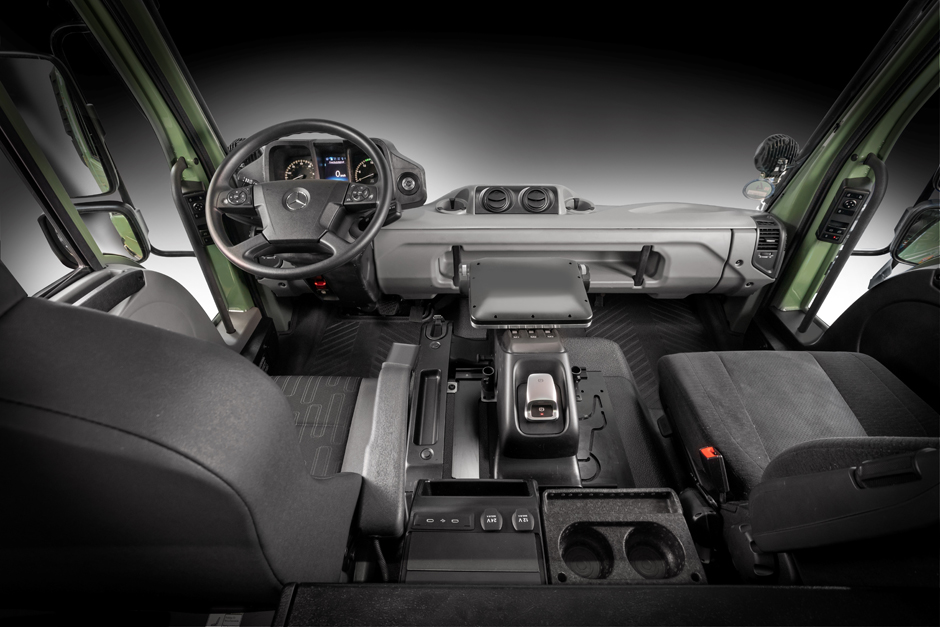 Mercedes-Benz Special Trucks stellt auf der Agritechnica, der Leitmesse für technologische Innovationen in der Landwirtschaft, das neue Bediensystem UNI-TOUCH für den Unimog vor. Im Mittelpunkt der Neuerungen des Bediensystems steht die umfassend überarbeitete Mittelkonsole, ein Touchscreen und eine flexiblere Positionierung des Joysticks.