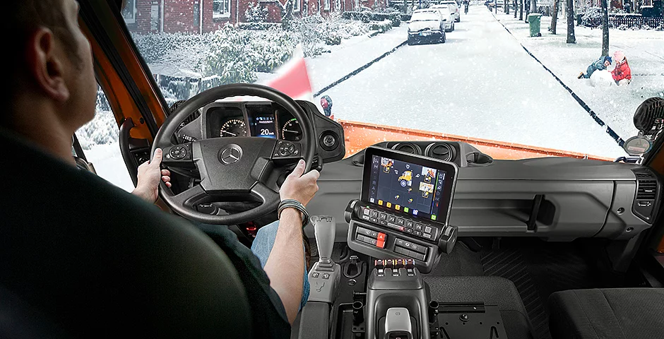 Mercedes-Benz Special Trucks präsentiert auf der IFAT in Halle C6, Stand 451, erstmalig einen Unimog mit neuem Bediensystem UNI-TOUCH sowie den neuen Sicherheitsfunktionen zur Erfüllung der ab Juli in Kraft tretenden EU-Gesetzgebung zur Verkehrssicherheit (General Safety Regulation, GSR). Im Rahmen der neuen GSR werden unter anderem ein Frontguard Assist, der Sideguard Assist 2, ein Verkehrszeichen-Assistent und eine Rückfahrkamera verbaut, um mehr Sicherheit, Unterstützung und Entlastung für Fahrer und Anwender zu schaffen. Außerdem können sich die Besucher an einem Simulator mit der Funktionalität der neuen Bedienung im Unimog Geräteträger vertraut machen.