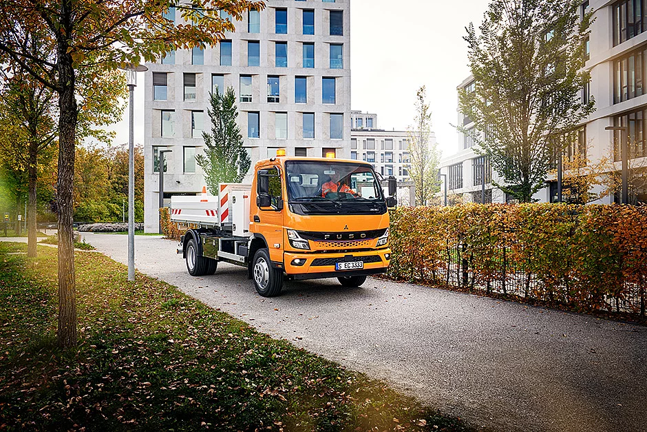 In der ausgestellten Variante wird der elektrische Leicht-Lkw über eine S-Batterie versorgt – eine Batterieladung bietet eine Reichweite von 70 km. Für den Einsatz im Baugewerbe ermöglicht der eCanter auf diese Weise deutlich mehr Zuladung und bietet Kunden, die auf Elektromobilität setzen, vielseitige Einsatzmöglichkeiten. Er ist in zwei weiteren Batteriekonfigurationen (M und L) verfügbar und kommt je nach Konfiguration auf bis zu 200 km Reichweite.