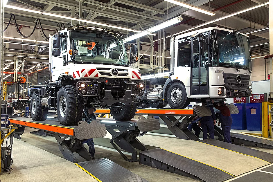 Hier entstehen Fahrzeuge der Baureihen Unimog, Econic und Zetros, die in mehr als 150 Ländern zum Einsatz kommen. Mit der Führung durch den Standort möchte die AG Gästen aus aller Welt die Gelegenheit geben, die Produktions-Kette in ihren „heiligen Hallen“ mitzuerleben. Ein speziell geschulter Tour-Guide führt die Besucher durch die Manufaktur, in der die Special-Trucks weitestgehend in Handarbeit gefertigt werden.