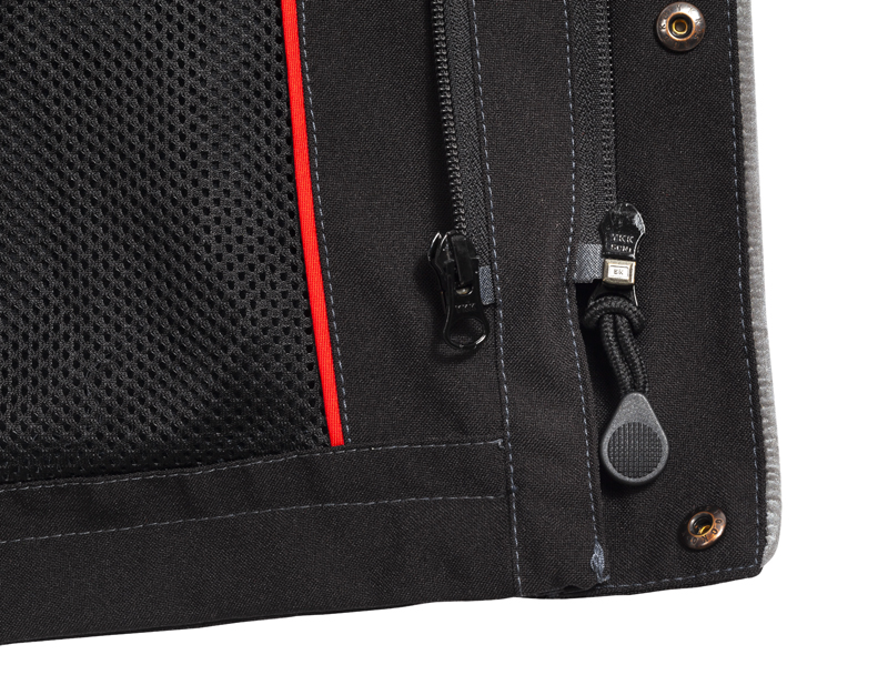 Etwa die im Stehkragen festgenähte, leicht einzurollende Kapuze. So entfällt lästiges An- und Abknöpfen, zudem wird durch eine leichte Weitenverstellbarkeit die Sicht nicht minimiert. Überzeugend sind auch die zahlreichen, wetterfest verschließbaren Taschenlösungen. Oder die eingearbeitete Regenrinne vorne am Frontreißverschluss. Sie verhindert, dass an dieser Stelle Wind und Regen eindringen.