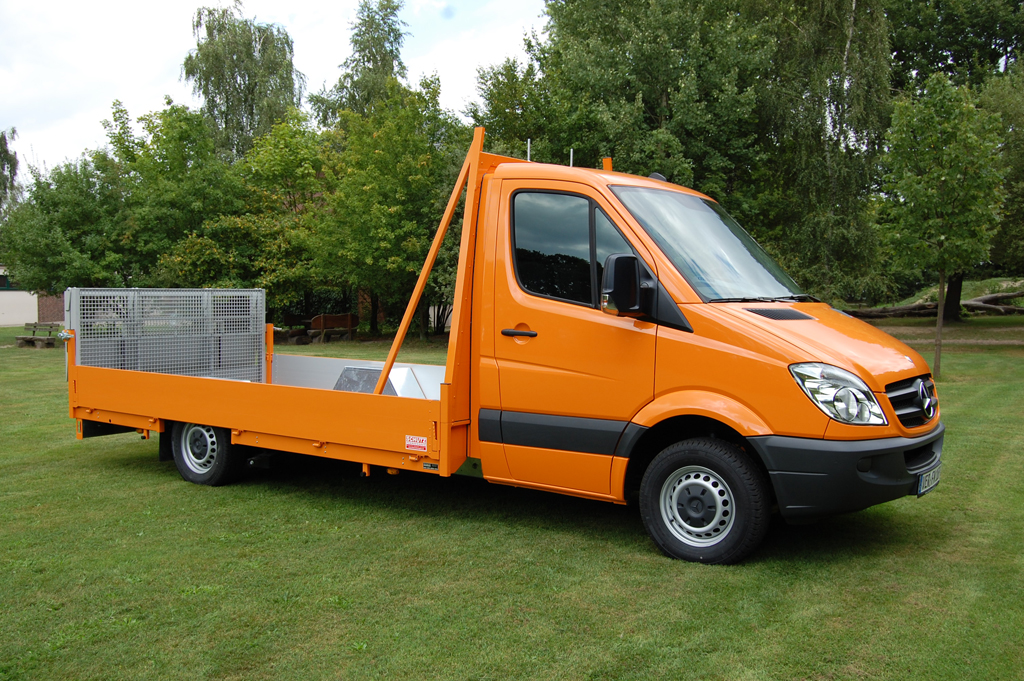 Vorstellung des Mercedes-Benz Sprinter Tiefrahmen mit Pritschenaufbau erfolgt auf dem Demopark Messestand der Fa. Schutz Fahrzeugbau Stand B 207 (Gemeinschaftsstand mit Fassi Ladekrane) Nach fast sieben erfolgreichen Jahren der Produktion von Tiefrahmenkoffern auf Basis des Mercedes-Benz Sprinter mit Al-Ko Tiefrahmenchassis gibt es nun eine weitere Neuheit aus dem Hause Schutz. In Zusammenarbeit mit Mercedes-Benz und Al-Ko stellten die Kirchlintelner Fahrzeugbauer einen Tiefpritschenaufbau der ganz besonderen Art in der Transporterklasse auf die Beine.