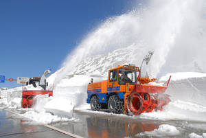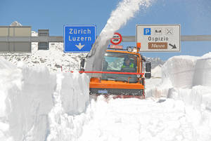 Andermatt/Schweiz. Rund 500 Kunden, Partner und Mitarbeiter der ASH Aebi Schmidt waren Ende April 2010 in Andermatt/Kanton Uri mit dabei, als das Unternehmen in einem großen Kundenevent, das erstmals seit rund 20 Jahren wieder unter eigener Regie stattfand, bei einer Passräumung am Gotthard seine aktuellen Produkte im Bereich der Kommunal- und Spezialmaschinen demonstrierte. „Der Gotthard ist einer der wichtigen Pässe in den Alpen, ein Bindeglied in Europa“, so der CCO der Aebi Schmidt, Walter Schmitz, bei der Begrüßung der Gäste. Welcher Ort würde sich also besser eignen, um die Stärken des Unternehmens bei der Enteisung von Straßen, beim Mähen und beim Schneeräumen zu demonstrieren?