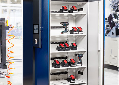 Beim RFP 825.30 SD von DENIOS gibt es weitere Pluspunkte, die das Produkt zur geeigneten Lösung bei der Akku-Lagerung machen: Groß dimensionierte Schiebetore bieten mehr Lagerkapazität als herkömmliche Modelle. Hinzu kommt, dass die offenen Schiebetore im Gegensatz zu Flügeltoren kein „Hindernis“ vor dem Regallager darstellen und damit auch eine effiziente Logistik gewährleistet wird. Steht das System im Außenbereich, besteht keine Gefahr, dass die Tore durch Windstöße ungewollt zuschlagen. Und: Sollte es im Lager zum Brandfall kommen, schließen die Türen automatisch.