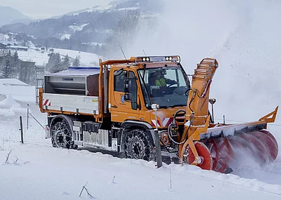 Für die neue Unimog-Generation sind jetzt eine Brandmelde- und auch eine Brandlöschanlage im Motorraum verfügbar. Damit erfüllt der „2-Wege Unimog“ die strengen Brandschutzanforderungen für den Einsatz in Tunneln bei gleichzeitig stattfindendem Fahrgastbetrieb.