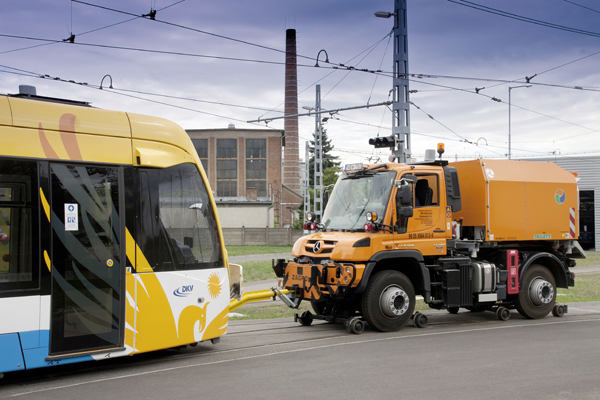Mercedes-Benz zeigt auf der Innotrans in Berlin (20. bis 25. September, Stand O/234 im Freigelände Süd), der internationalen Leitmesse für die Eisenbahnbranche, drei seiner neuesten Modelle für den Einsatz auf Straße und Schiene. Der „2-Wege Unimog“ wird genutzt als Rangierfahrzeug, in der Schienen- und Oberleitungswartung sowie bei Arbeiten auf und an den Strecken. Zu den Kunden zählen Eisenbahnunternehmen, Betreiber von Metrosystemen und Stadt- und Straßenbahnen sowie auch Dienstleister in Gleisbau und Streckenunterhaltung.