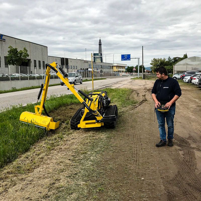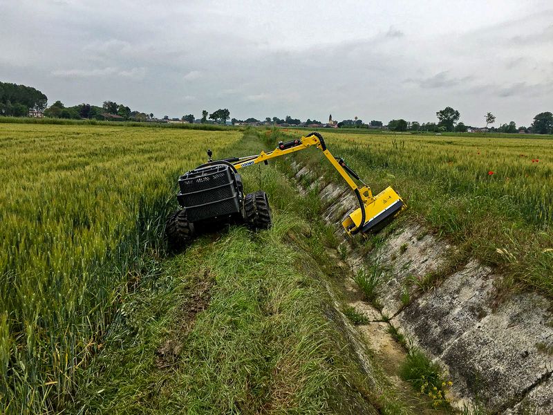 Durch die stetige Weiterentwicklung und Verbesserung seiner Maschinen hat sich der italienische Hersteller Energreen in den vergangenen Jahrzehnten mit seinen funkferngesteuerten Multifunktions-Geräteträgern einen Namen gemacht. Zwischenzeitlich konnte das Unternehmen darüber hinaus seine Angebotspalette an Anbaugeräten so enorm erweitern, dass die gelben Raupen in der Lage sind, die unterschiedlichsten Arbeiten zu meistern. Nach dem Riesenerfolg der großen Modelle versucht sich Energreen nun erstmals auch an etwas Kleinerem. Das Ergebnis in Form einer Mini-Mähraupe feiert in Hannover auf der Weltleitmesse für Landtechnik, der Agritechnica, in Halle 26 (Stand H60) seine Deutschlandpremiere. Vom 10. bis 16. November bekommt das dortige Fachpublikum somit eine weiter Energreen-Maschine zu sehen, die nicht nur in ihrer Leistungsklasse einzigartig ist, sondern, wie schon bei den größeren Modellen der Robo-Serie, mit derselben Qualität der einzelnen Komponenten gebaut wurde und ebenfalls über eine umfangreiche Auswahl an Anbaugeräten verfügt.