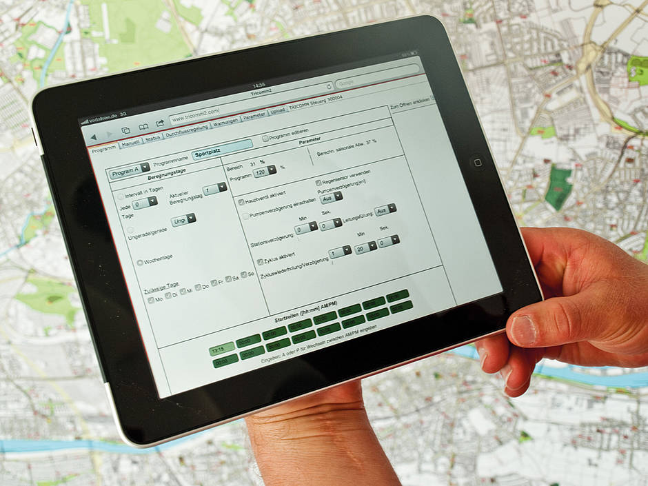 Doch es gibt die Lösung, mit der Beregnungsanlagen kontrolliert und Abweichungen korrigiert werden können, ohne vor Ort sein zu müssen. Mit TriComm wird die Überwachung der Beregnungssysteme ganz modern über das Internet gesteuert. Rund um die Uhr und von überall können die verantwortlichen und autorisierten Personen Systemchecks durchführen, Fehler überwachen und Eingriffe in die Programmierung der Anlage vorgenehmen. Das bedeutet mehr Effizienz in der Organisation von Grünanlagenbetreibern. Die Arbeitsstunden für die täglichen Rundgänge werden frei für andere Aufgaben. Unnötiger Wasserverbrauch wird unterbunden.