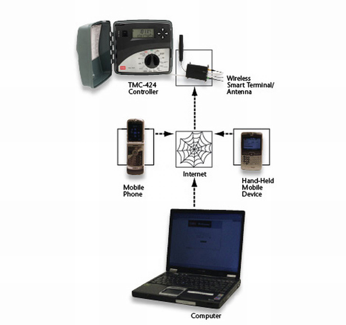 Und so einfach funktioniert´s: Das Steuerungsgerät TMC-424E wird an ein GPRS-Modem angeschlossen. Der zuständige Mitarbeiter kann sich mit seinem Nutzernamen und dem zugehörigen Passwort im Internet auf der entsprechenden Website anmelden und hat weltweit unmittelbaren Zugang zu TriComm. Somit kann er von seinem Endgerät aus die komplette Beregnung kontrollieren und steuern.