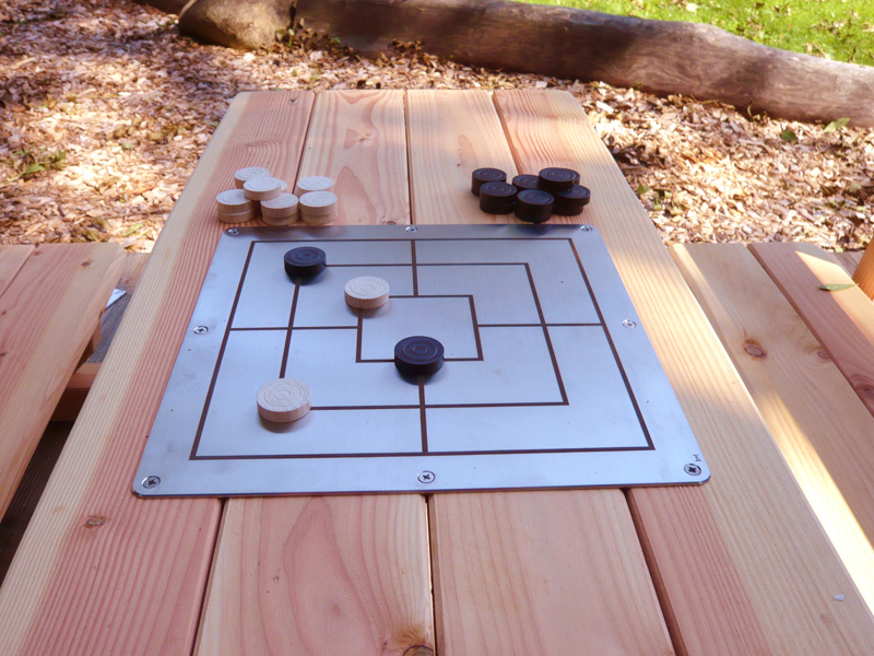 Zig-Tausende von Tischen stehen in Parks, auf Spielplätzen oder in sonstigen Publikumsräumen. Weit mehr Kinder, Jugendliche, Erwachsene und Senioren kennen Gesellschaftsspiele wie Schach, Mühle, Mensch ärgere dich nicht, etc. und spielen begeistert, wenn sie die Möglichkeit geboten bekommen. Die auf dem Markt befindlichen Spieletische bedeuten eine kostspielige Anschaffung und Montage. Dazu kommt die Standortsuche, da diese (Beton)-Tische nicht immer in die Umgebung passen oder zu den vorhandenen Außenmöbeln.