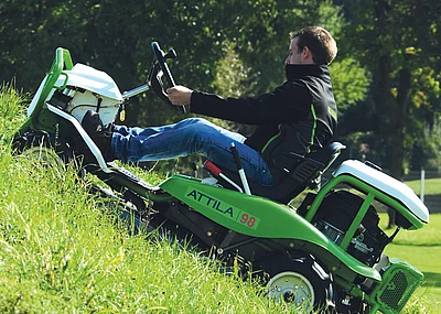 Die optimale Verteilung des Antriebsmomentes sorgt für rutschfreies Manövrieren des Aufsitzmähers. Unabhängig vom Gelände wird damit der Rasen geschont.