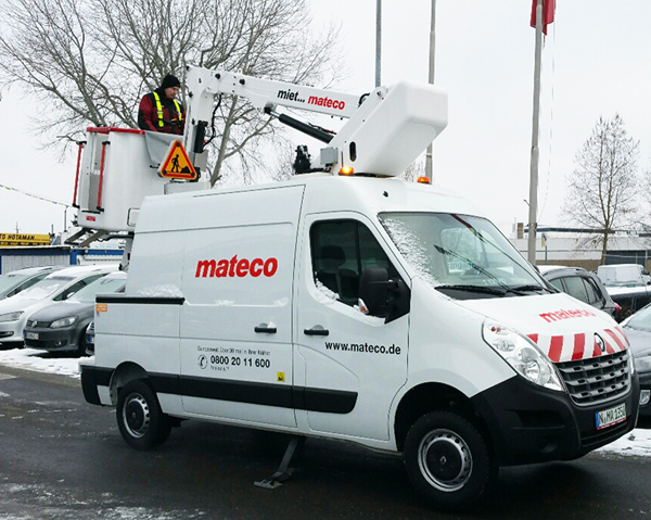 Der Arbeitsbühnenvermieter mateco hat eine neue LKW-Arbeitsbühne mit Hybrid-Antrieb der Hubeinrichtung im Mietpark – die LT 135 K D/E. Auf einem 3,5 t-Kastenwagen aufgebaut und mit einem 1.000 Volt-Isolierkorb versehen, bietet diese moderne Arbeitsbühne eine Vielzahl an Einsatzmöglichkeiten. Dank der kompakten Abmaße und einer Zuladung im Fahrzeug von maximal 400 kg, ist die Arbeitsbühne ideal geeignet um Lasten wie z.B. unterschiedliches Werkzeug bequem zum Einsatzort zu transportieren. Der emissionsarme Hybrid-Antrieb sorgt darüber hinaus für Einsätze, gerade auch im innerstädtischen Bereich, die Lärm und Emissionsreduzierung erfordern.