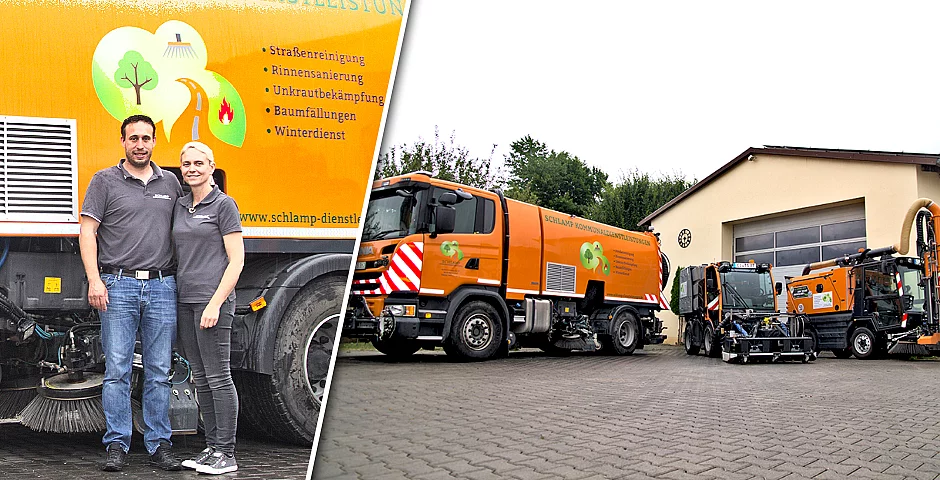 Beim angebotenen Leistungsportfolio verfährt Schlamp nach einem einfachen Grundsatz: „Wir schauen, welche Arbeiten die Kommunen nicht übernehmen können. Denn die Problematik, die eine Kommune hat, haben viele andere meistens auch.“ Neben Kommunal-Klassikern wie z.B. der Straßenreinigung und dem Winterdienst, bietet das Unternehmen Kompetenzen, mit denen sich Bauhöfe eher seltener beschäftigen. Ein Fokus liegt auf der Rinnensanierung, für die Schlamp eine schlagkräftige Lösung parat hat. So haben die Kommunaltechniker einen speziellen Lkw konzipiert, um zementgebundenen, kunststoffmodifizierten Pflasterfugenmörtel auch über lange Distanzen in der richtigen Konsistenz halten und einsetzen zu können. Nachdem in einem ersten Arbeitsschritt brüchiges Fugenmaterial mittels konzentriertem Wasserstrahl aus der Rinne herausgefräst wurde, kommt der Baustoff zum Einsatz. Die übrig gebliebene Schlämme wird nach dem Ansteifen des Pflasterfugenmörtels anschließend durch eine Kehrmaschine entfernt. Laut Schlamp sei durch diese Arbeitsweise die sechs- bis achtfache Flächenleistung einer herkömmlichen Straßenmeisterei möglich.