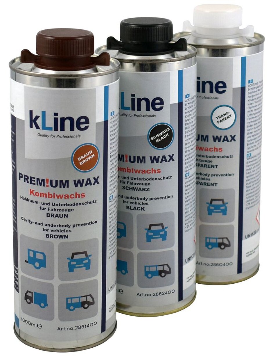 Das kLine Premium Wax ist eine Einschritt-Konservierung für Hohlräume und Unterboden mit hoher Abriebfestigkeit und tropffreier Verarbeitung. Durch den Aromatengehalt von unter 1% ist es besonders geruchsarm. Die grifffeste Wachsbeschichtung unterwandert Rost, verdrängt alle Rostverursacher und ist mit Testbenzin oder Kaltentfettungsmitteln entfernbar. Das kLine Premium Wax wird durch Spritzen mit Airless- bzw. Airmixsystemen oder mit Pinsel tropffrei aufgetragen und ist in den Farben transparent, braun und schwarz in diversen Gebindegrößen vom 500ml Spray bis zum 60l Fass erhältlich.