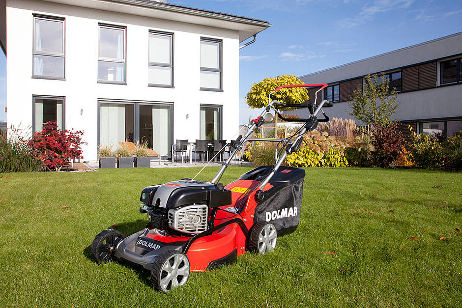 Für größere Rasenflächen zwischen 1.200 und 2.200 Quadratmetern zeigt Dolmar ein umfangreiches Sortiment an neuen Rasenmähern mit 46, 53 und 56 Zentimetern Schnittbreite. Alle neuen Benzin-Mäher hat Dolmar mit einem Stahlblechgehäuse, Kantenschutz und Seitenauswurf ausgestattet. Die Modelle PM-462, PM-4602 S, PM-4602 S3 und PM-5102 S3 verfügen außerdem über eine Füllstandskontrolle des Fangsacks und einen Mulchkeil. Der PM-5600 S3 und der PM-4602 S haben zudem Radantrieb. Den größten Komfort bietet die neue Baureihe durch die ergonomische Griffgestaltung, doppelt kugelgelagerte und große Räder mit Leichtlaufprofil.