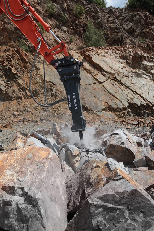 Der neue Hydraulikhammer Doosan DXB130H eignet sich für Bagger mit Betriebsgewichten bis 22 t, wie etwa die Kettenbagger Doosan DX160LC und DX180LC sowie für die Mobilbagger DX160W, DX170W, DX190W und DX210W. Der Hydraulikhammer DXB130H hat ein Betriebsgewicht von 1.090 kg und eine Schlagenergie von 2,7 kJ. Der Hammer DXB190H ist für die Nutzung mit Doosan-Baggern von 22 bis 30 Tonnen konzipiert. Er hat ein Betriebsgewicht von 1.815 kg und eine Schlagenergie von 4,0 kJ. Er ist für die Nutzung mit den mittelschweren bis schweren Doosan Kettenbaggern (Modelle DX225LC bis DX300LC) zugelassen.
