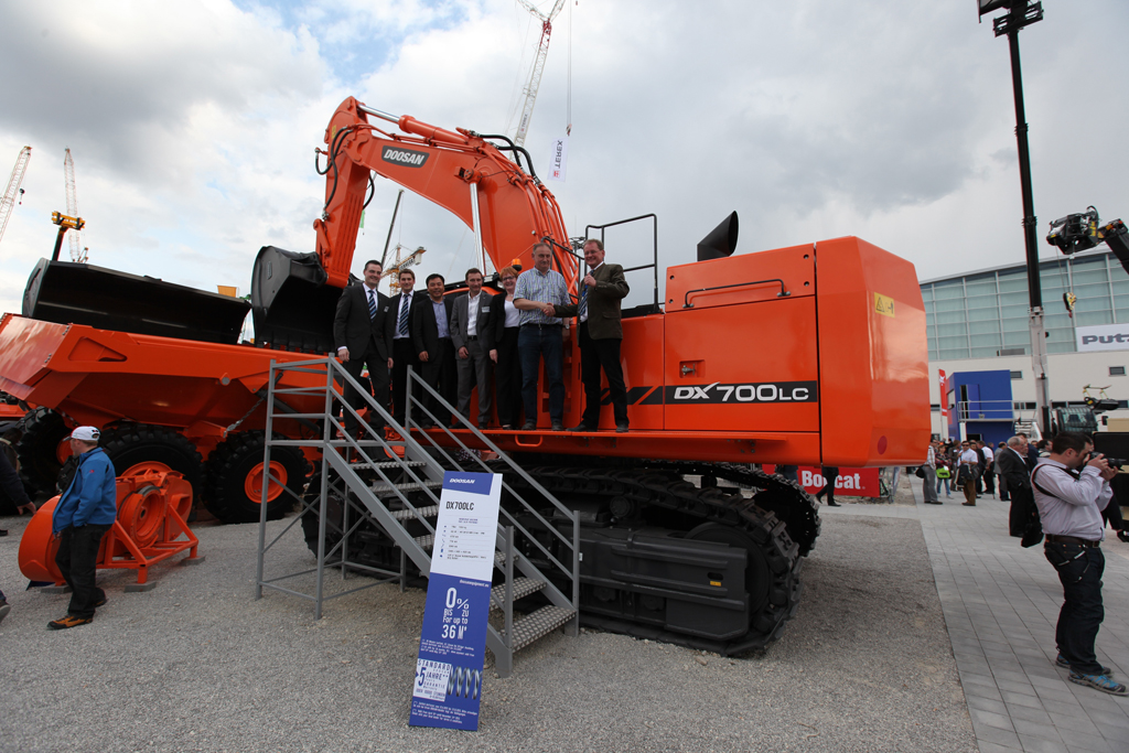 München, Deutschland – Ein echter „Big Deal“ gelang Doosan während der diesjährigen bauma in München. Auf dem Freigelände-Gemeinschaftsstand mit Bobcat verkaufte der südkoreanische Baumaschinenhersteller den deutschlandweit ersten 70-Tonnen-Kettenbagger an die KAFRIL & REINWALD Spezialabbruch GmbH. Durch die Unterzeichnung des Kaufvertrags über den DX700LC wurde eine bislang bereits überaus erfolgreiche Messepräsenz am zweiten Messetag zusätzlich gekrönt.