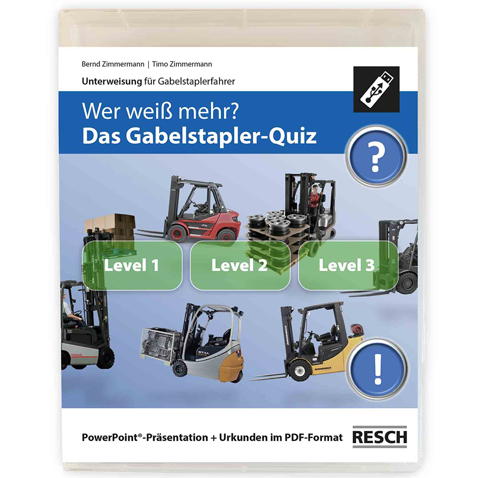 Mit dem Frage-Antwort-Spiel findet im Zuge der Unterweisung automatisch eine Verständnisüberprüfung statt. Dadurch bleibt die Schulung für alle nachhaltig in Erinnerung, die Arbeitssicherheit wird ganz spielerisch erhöht und gleichzeitig erfüllen die Teilnehmer auch noch die gesetzlichen Vorgaben. Im gleichen Stil ist bereits die jährliche Unterweisung „Wer weiß mehr? Das Gabelstapler-Quiz“ erschienen.