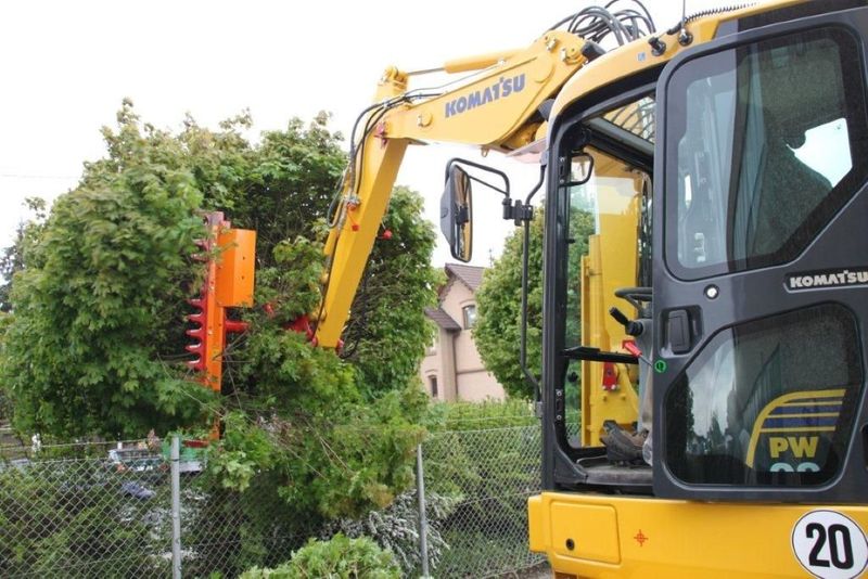 „Nimm den Bagger und mäh‘ den Rasen.“ So abwegig ist dieser „Auftrag“ gar nicht. Denn, Dücker Anbaugeräte und Arbeitsköpfe können an einer Vielzahl von Geräteträgern aus dem Baumaschinenbereich montiert werden. Das Spektrum reicht vom Schmalspurtraktor über Pflegegeräte und Radlader bis hin zum Bagger.
