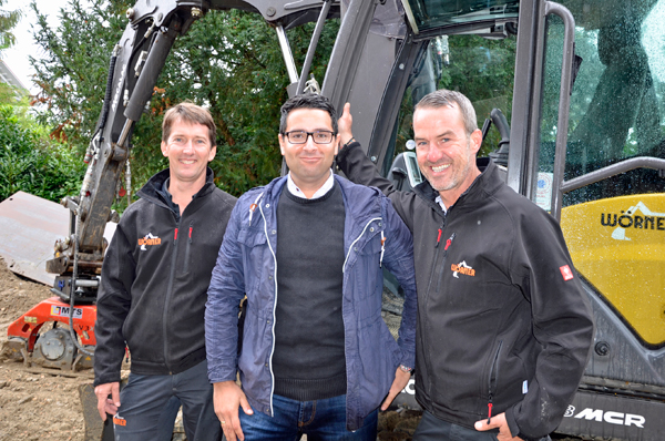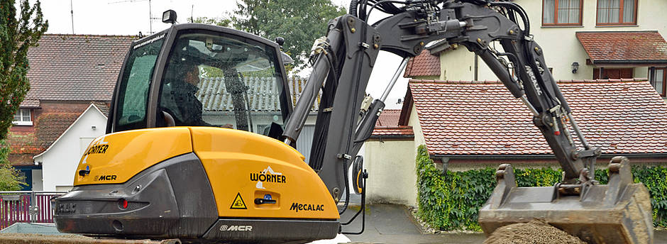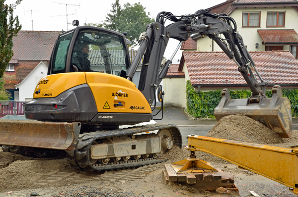 Die Wörner-Brüder möchten auf ihren multifunktionalen Helfer nicht mehr verzichten. „Wir haben den 8MCR schon jahrelang beobachtet, weil uns die Kombination aus Bagger und Lader beeindruckt hat“, verrät Ingo Wörner. Zwei Maschinengenerationen mit einigen Optimierungen wartete man allerdings ab, bevor man sich entschloss, bei der Kiesel GmbH,die die Mecalac-Bagger in Deutschland exklusiv vertreibt, nach einem Testgerät zu fragen. Vor etwa einem Jahr konnte Vertriebsrepräsentant Gökmen Durak den Bauunternehmern einen 8MCR zur Verfügung stellen. „Wir haben zwei Wochen damit gearbeitet und ihn dann einfach nicht mehr hergegeben“, schmunzelt Oliver Wörner. Vor allem die jungen Mitarbeiter der Wörner Bau GmbH freuen sich auf jede enge Baustelle. „Der Skid-Bagger kommt vor allem bei der ‚Generation Playstation’ gut an. Die jungen Leute gehen sehr intuitiv mit den Funktionen um und haben viel Spaß am großen Potenzial der Maschine.“
