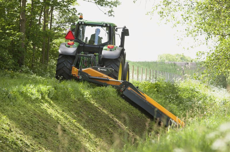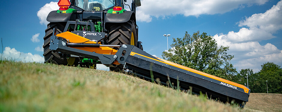 Der Votex Maximus ist das Seitenmulchgerät für den professionellen Einsatz. Der Maximus zeichnet sich durch seine grundsolide Konstruktion und großartigen Mäheigenschaften aus. Große Leistungsfähigkeit, vielseitige Einsetzbarkeit und geringe Wartungsansprüche – das macht diese Maschine bei professionellen Anwendern wie Lohnbetrieben, Kommunen und Wasserverbänden so populär. Der Maximus ist für Einsätze an Straßenböschungen und in Gräben geeignet. Dabei braucht die Maschine ein Minimum an Wartung. Der Votex Maximus ist mit einem Power-Band sowie einem Getriebe mit Schrägverzahnung ausgestattet, die für den niedrigen Geräuschpegel verantwortlich sind. Beim Mähen schafft er einen Winkel von -60° bis +90°und zeigt dabei stets eine gute Bodenanpassung, auch bei unebenen Flächen. Die Maschine besitzt eine Anfahrsicherung sowie hydraulische Seitenverschiebung von 60 cm. Der Votex Maximus kommt mit einem 40 x 12 “J” Schlegel für sehr gute Mulchqualität – optional gibt es ihn aber auch mit einem 1,3 kg Hammerschlegel.