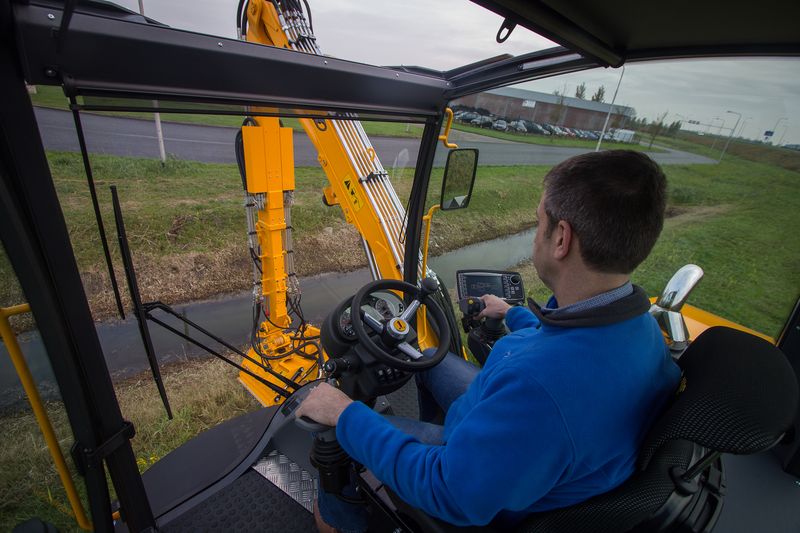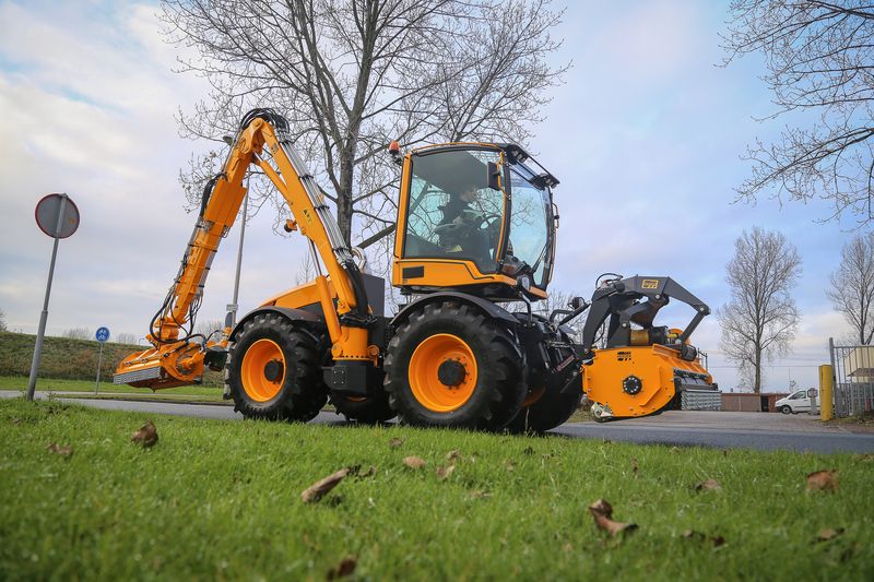 Der Herder One ist eine vielseitige Maschine, an die sowohl ein Mähkorb als auch ein Schlegelmäher angebaut werden kann. Die Maschine kann mit allen anderen Arbeitsgeräten aus dem Sortiment von Herder ausgerüstet werden. Aufgrund dieser hohen Flexibilität kann die Maschine ganzjährig eingesetzt werden, sowohl für Wassergräben als auch Bankette. Im Hinblick auf vielseitige Einsatzmöglichkeiten, muss die Maschine kompakte Abmessungen haben. Herder löst dies mit einer Breite von 250 cm und einer Länge von 480 cm. In der Standardausführung wird der Herder One mit 600-70/R30-Reifen ausgeliefert. Diese geben der Maschine eine gute Bodenfreiheit von 50 cm. Beim Herder One ist die Hydraulikeinheit in die Maschine integriert. Deshalb stimmt der Druck unter allen Bedingungen perfekt. Ein hydraulisch regelbarer Kühler sorgt für die optimale Betriebstemperatur. Damit nichts dem Zufall überlassen bleibt, hat sich die Dutch Power Company für eine praxiserprobte Technologie entschieden. Es kommen beispielsweise die gleichen Zylinder wie beim Grenadier zum Einsatz sowie die gleichen hydraulischen Schalt- und Lenkungsventile.