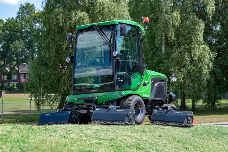 Roberine führt die 5-Serie ein, die aus dem F5-Schlegelmäher und dem R5-Spindelmäher besteht. Diese Produkte sind das Ergebnis jahrelanger Erfahrung in der Entwicklung und Konstruktion von Mähern für den Garten- und Landschaftsbau. Zudem wurde hierzu die fortschrittlichste Technologie verwendet. Nicht nur im Bereich von Motor- und Antriebstechnik, sondern auch der Mähtechnik. Der Roberine F5 verfügt über einen robusten Schlegel mit optimalem Design für ein perfektes Mähbild. Der Roberine R5 ist mit qualitativ hochwertigen Jumbo-Spindeleinheiten ausgestattet. Beide Maschinen sind breit einsetzbar – vom Park bis zum Sportplatz. Die nachfedernden Tragarme sollen Kollisionsschäden verhindern. Für die Mäheinheiten stehen bei den Maschinen zwei hydraulische Axialkolbenpumpen zur Verfügung. Das Schnittgut wird dabei, auch bei Feuchtigkeit, gut verteilt. Die Maschinen sind sowohl für kurzes als auch langes Gras geeignet. Angetrieben werden sie von einem Yanmar 4-Zylinder Turbodiesel 2.0 intercooler (Stage 5) und schaffen dabei 47 kW (66 PS) bei 2600 U/min. Zwei Fahrpedale sowie automotives Fahren in der Transportstellung runden die 5-Serie von Roberine ab.