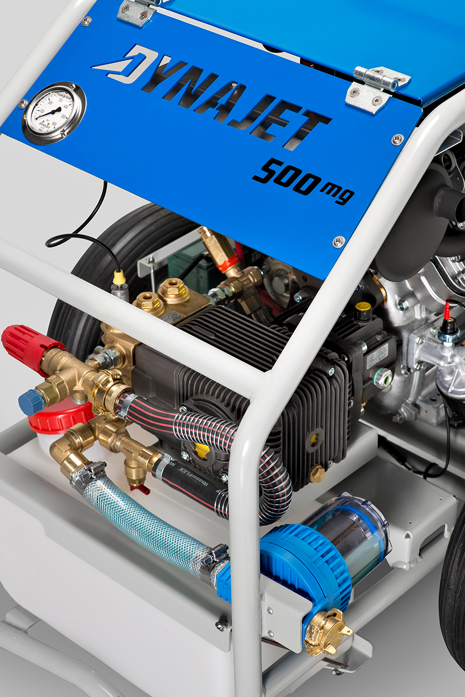 Mit dem neuen 500mg hat DYNAJET Ende vergangenen Jahres den kraftvollen großen Bruder des 350-bar-Trolleys auf den Markt gebracht. Inklusive passendem Zubehör säubert das Gerät mit 500 bar und 15 l/min äußerst effizient und kraftvoll. Im kommunalen Bereich eignen sind die kompakten und leichten Trolleys für die Reinigung von Haltestellen, Flächen, Denkmälern, Entfernung von Graffiti sowie für weitere Aufgaben.