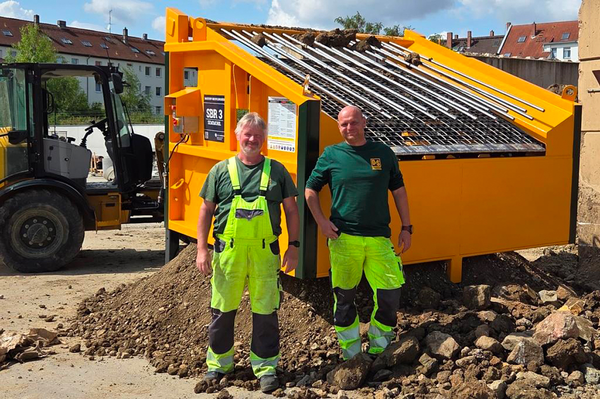 Ganz nebenbei war dies ein Jubiläum – es ist das 150. Baustoff-Recyclingsieb SBR3. Seit 2019 ist das Modell auf dem Markt und heute in der dritten Entwicklungsgeneration, optimiert für die Radladerbeschickung mit bis zu 2,50 Metern Schaufelbreite und Trennschnitten von sechs bis 60 mm. Neben dem Einsatz am Betriebshof wird das SBR3 auf Baustellen ab circa 300 Tonnen Siebgut eingesetzt. Das Transportmaß von 2,40 Metern und das Gewicht von 2,3 Tonnen erleichtern die Handhabung.