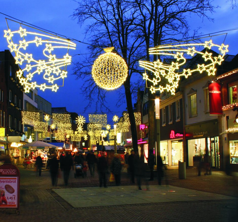 In den Supermarkt-Regalen tauchen bereits leckere Spekulatius und allerlei Lebkuchen auf – die besinnlichste Zeit des Jahres steht schon vor der Tür. Ein perfekter Zeitpunkt, um städtische Weihnachtsbeleuchtung mal wieder unter die Lupe zu nehmen. Bei brüchigen Kabeln, defekten Leuchtmitteln oder ausgeblichenen Girlanden unterstützt Ebeling Licht die Umsetzung einer neuen Beleuchtungslösung, die sich individuell ins Stadtbild einfügen lässt, oder auch bei der Reparatur sowie Umrüstung vorhandener Motive.