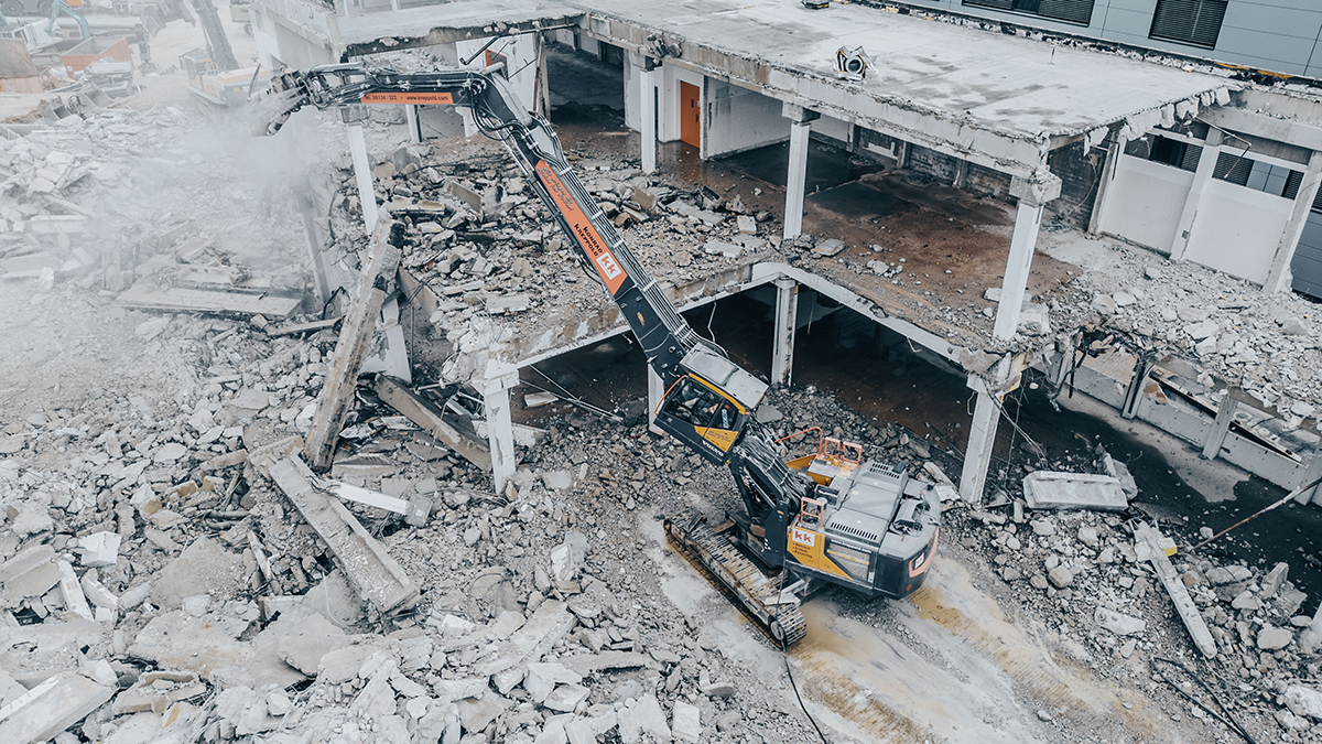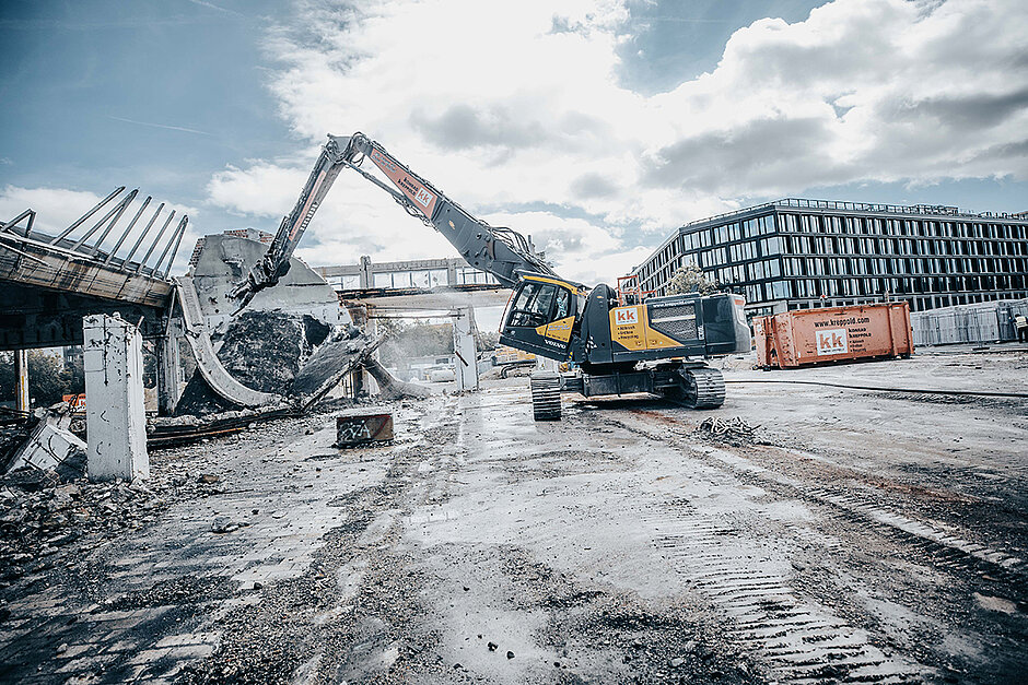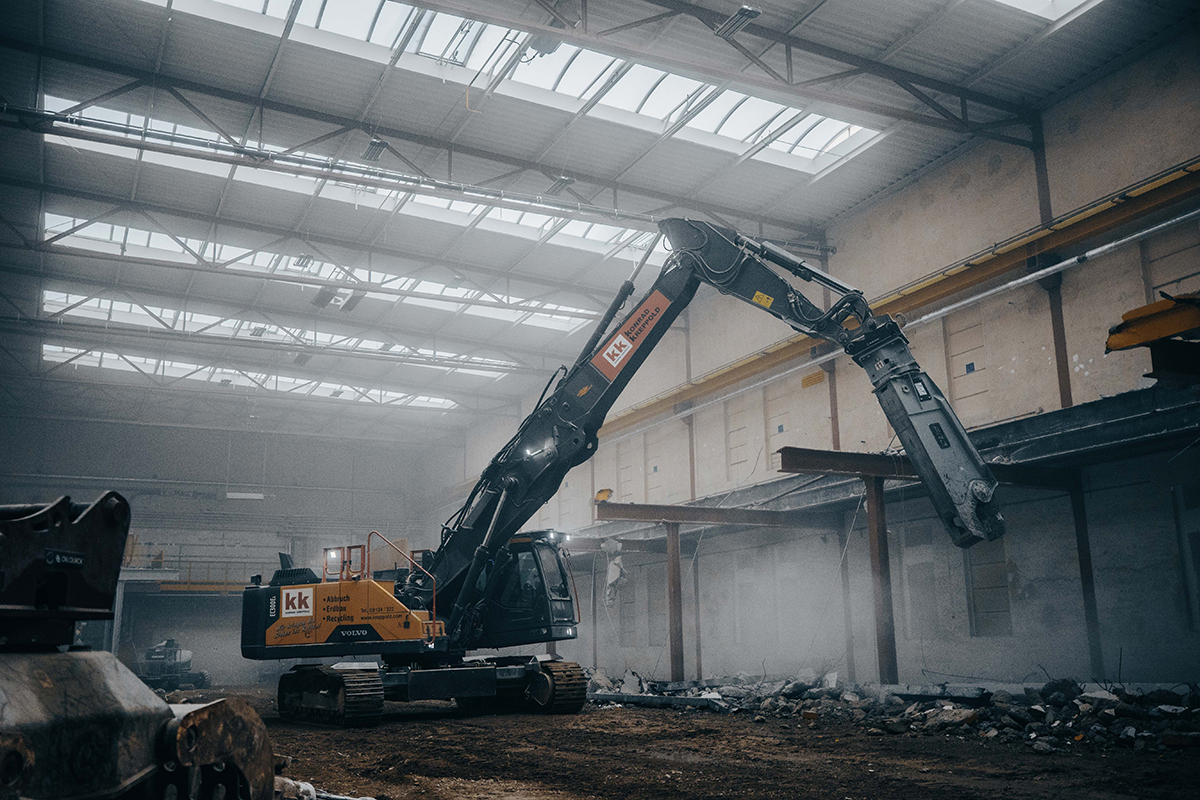 Der Umbauspezialist ECHLE Hartstahl hat einen VolvoEC300 EL für das Abbruchunternehmen Konrad Kreppold zum EHD 300 Abbruchbagger umgebaut. Ziel war die Schaffung einer multifunktionalen Abbruch- und Erdbaumaschine, die sowohl den hohen Anforderungen an Reichhöhe als auch an Flexibilität und Transportfähigkeit gerecht wird.