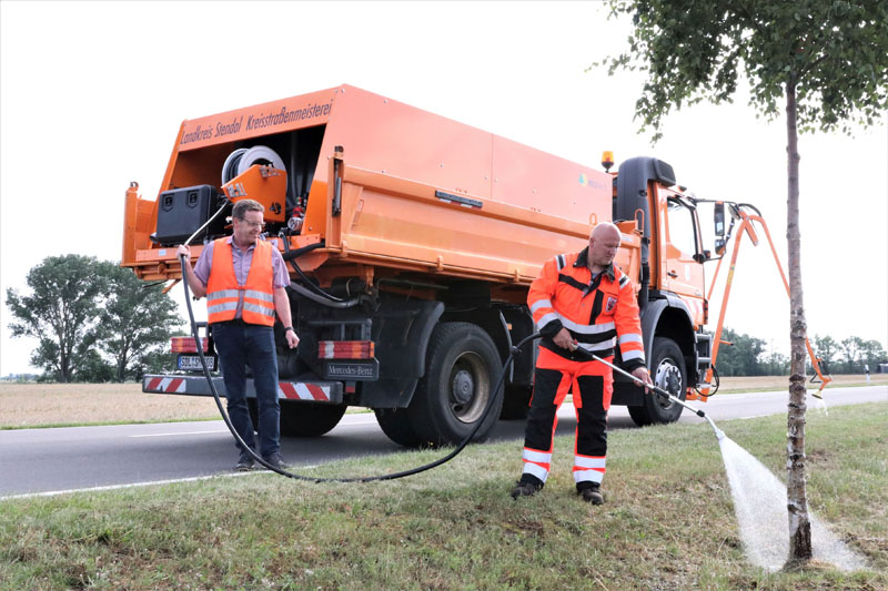 „Die neue Gießanlage ist qualitativ hochwertig, einfach zu bedienen und wir können damit im Ein-Mann-Betrieb große Reichweiten erzielen“, sagt Thomas Müller, Leiter des Straßenbauamts des Landkreises Stendal.