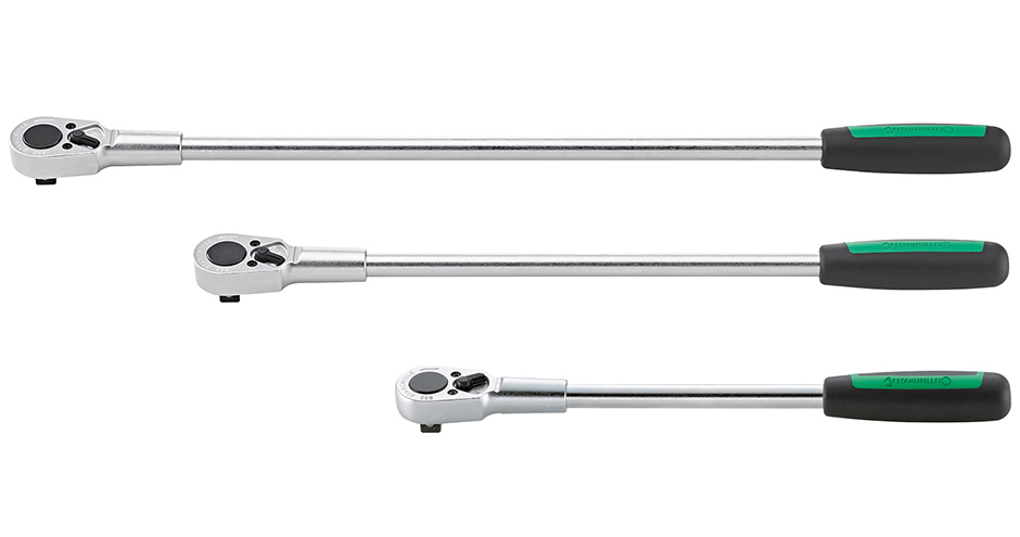 Die Stahlwille-Knarre 532 wird von Anwendern in Handwerk und Industrie wegen ihrer Handhabung und Vielseitigkeit geschätzt. Um den Anforderungen gerecht werden zu können, ergänzt Stahlwille das bewährte Modell um zwei Ausführungen mit größerer Schaftlänge. Damit steht „532“ nicht mehr für ein Modell, sondern für eine Produktfamilie. Künftig wird die Knarre mit den Schaftlängen 380 mm, 497 mm und 612 mm angeboten. Dank des größeren Hebelarmes lassen sich somit hohe Kräfte mit weniger Anstrengung übertragen.