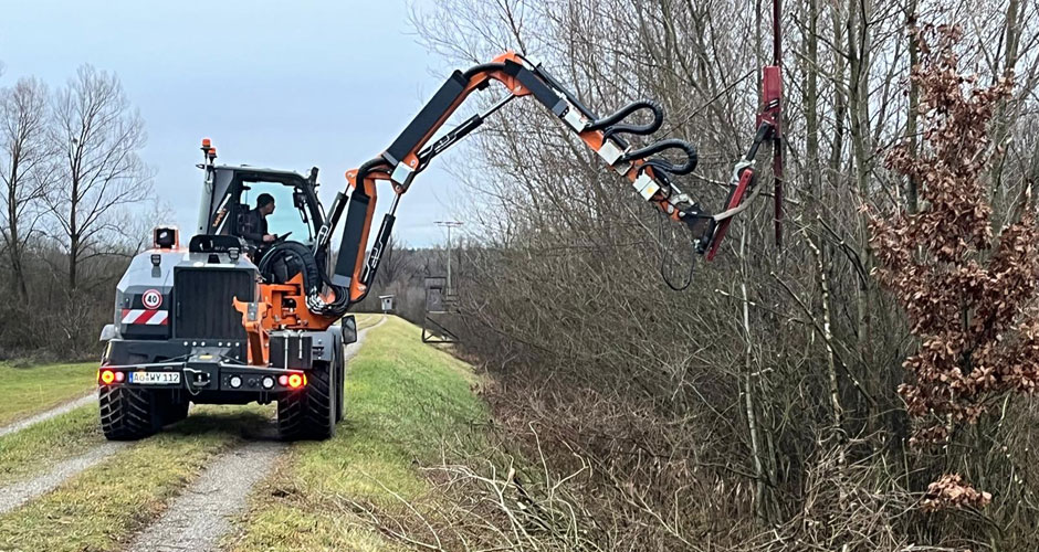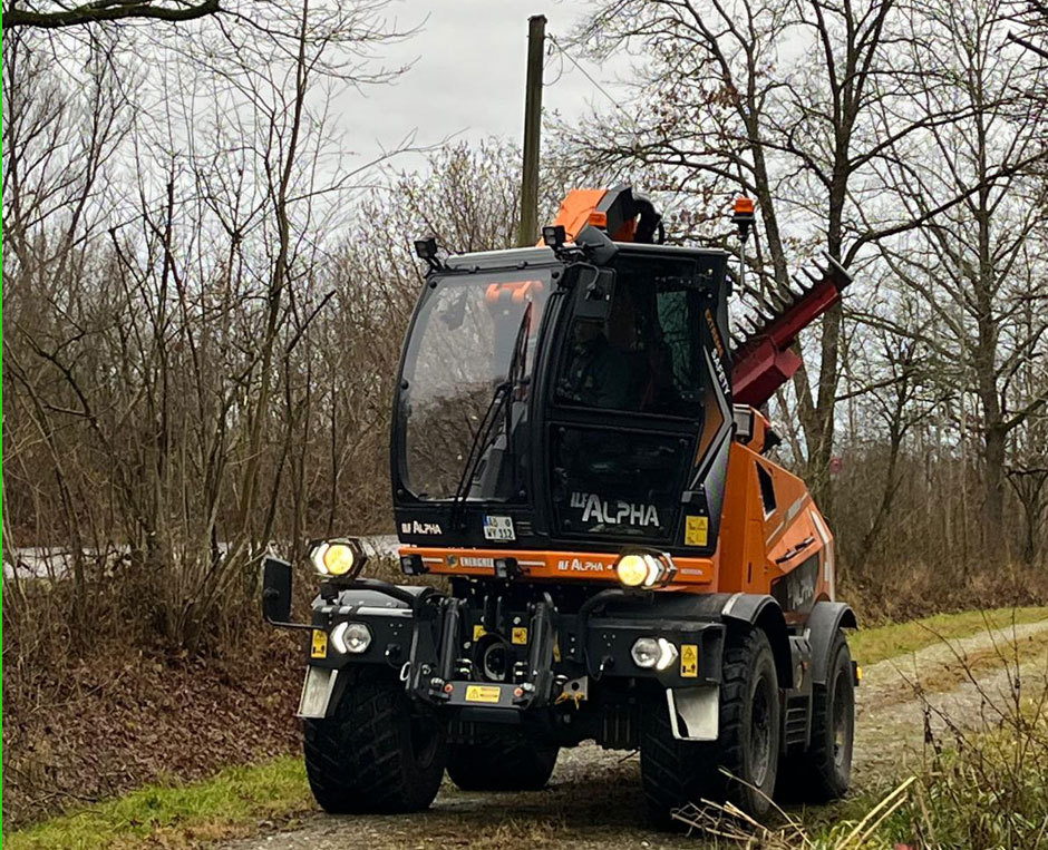 Nun setzt der Betrieb seine Erfolgsgeschichte fort: Im November wurde eine weitere Maschine von Energreen angeschafft – der ILF Alpha mit einem elf Meter langen Ausleger. Diese Maschine bietet im Vergleich zur ersten Anschaffung deutliche Verbesserungen, darunter eine optimierte Rundumsicht, eine Vorderachsfederung sowie weitere technische Innovationen. Gleich geblieben sind jedoch die vielfältigen Einsatzgebiete in Land- und Forstpflege, egal bei welcher Jahreszeit.