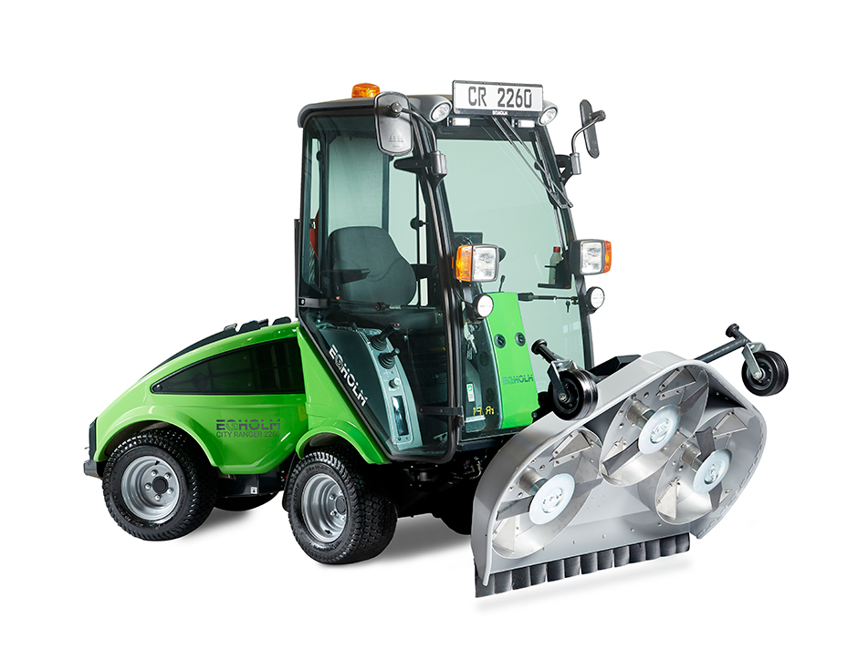 Die Einstellung der Schnitthöhe erfolgt hydraulisch und bequem vom Fahrersitz aus. Trotz geringem Energieverbrauchs erzielen die Mähmesser ein gutes Mähbild, und durch die verstärkten Kanten des Mähwerks wird zudem ein effektiver Schutz vor Verschleiß gewährleistet. Dank seiner Knicklenkung ist der City Ranger 2260 außerordentlich wendig und daher auch für beengte Bereiche geeignet, wie z.B. für Friedhöfe.