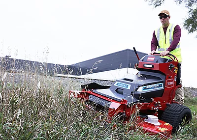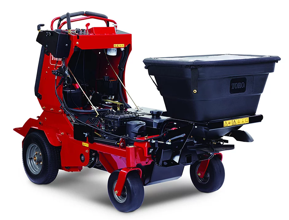 Kommunale und gewerbliche Nutzer, die eine Rasenrenovierung planen, profitieren vom Steh-Aerifizierer-Modell 29516 von Toro, das zugleich Leistung und Produktivität eines großen Aerifizierers vereint. Mit der Maschine kann in Bereichen gearbeitet werden, wo bisher nur handgeführte Geräte eingesetzt wurden. Der Schwerpunkt des Modells liegt auf der Manövrierfähigkeit, da es durch ein Standardgartentor mit einer Breite von nur einem Meter passt. Somit ist die Maschine schnell einsatzbereit und bestens für Projekte jeder Größe geeignet. Mit dem Aerifizierer kann eine Arbeitsgeschwindigkeit von bis zu elf km/h erreicht werden. Um eine konstante Kerntiefe – unabhängig vom Gelände – zu gewährleisten, wird die Leistung und Hydraulik während des Vorgangs automatisch optimiert.