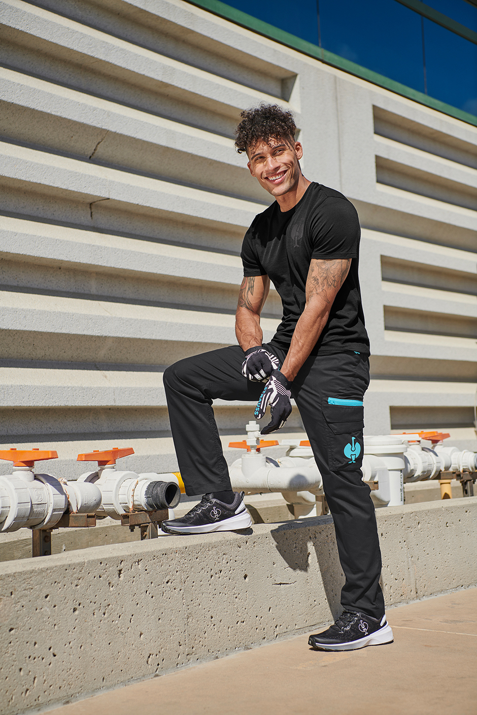 Bei den neuen Arbeitshosen im Trail-Team liegt der Fokus besonders auf der Robustheit. Eine leichte, aber besonders strapazierfähige Baumwoll-Polyamid-Mischung mit hohem Stretch-Anteil bietet Komfort und Performance für den harten Einsatz. Bei den Bundhosen kommen noch Kniepolstertaschen aus festem Polyamid dazu, um die Knie zusätzlich durch den optionalen Einsatz von Kniepolstern zu entlasten.