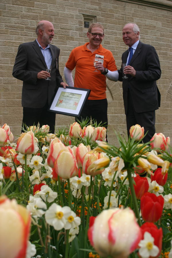 Geballte grüne Fachkompetenz traf sich am 7. Mai im Klenzepark in Ingolstadt, um sich über die Verwendung von Blumenzwiebeln in städtischen Grünflächen zu informieren. Rund 50 Vertreter von Kommunen und Wohnungsbaugesellschaften aus ganz Bayern und Hessen nahmen an dem von Verver Export organisierten Frühlingsforum teil. Das holländische Unternehmens Verver Export ist ein europaweit führender Lieferant von Blumenzwiebeln, Blumenzwiebelmischungen und Staudenmischungen mit Blumenzwiebeln und seit dem Jahr 2010 auch in Deutschland präsent. In verschiedenen Fachvorträgen, kombiniert mit einer Tour entlang aktueller Blumenzwiebel-Pflanzungen in Ingolstadt sowie einer praktischen Erläuterung der Pflanzmaschine erfuhren die Teilnehmer viel Neues über den Einsatz von Blumenzwiebeln in Parks, in Straßenrandbereichen, Baumscheiben und Pflanzkübeln, aber auch in Verwilderungsgebieten.